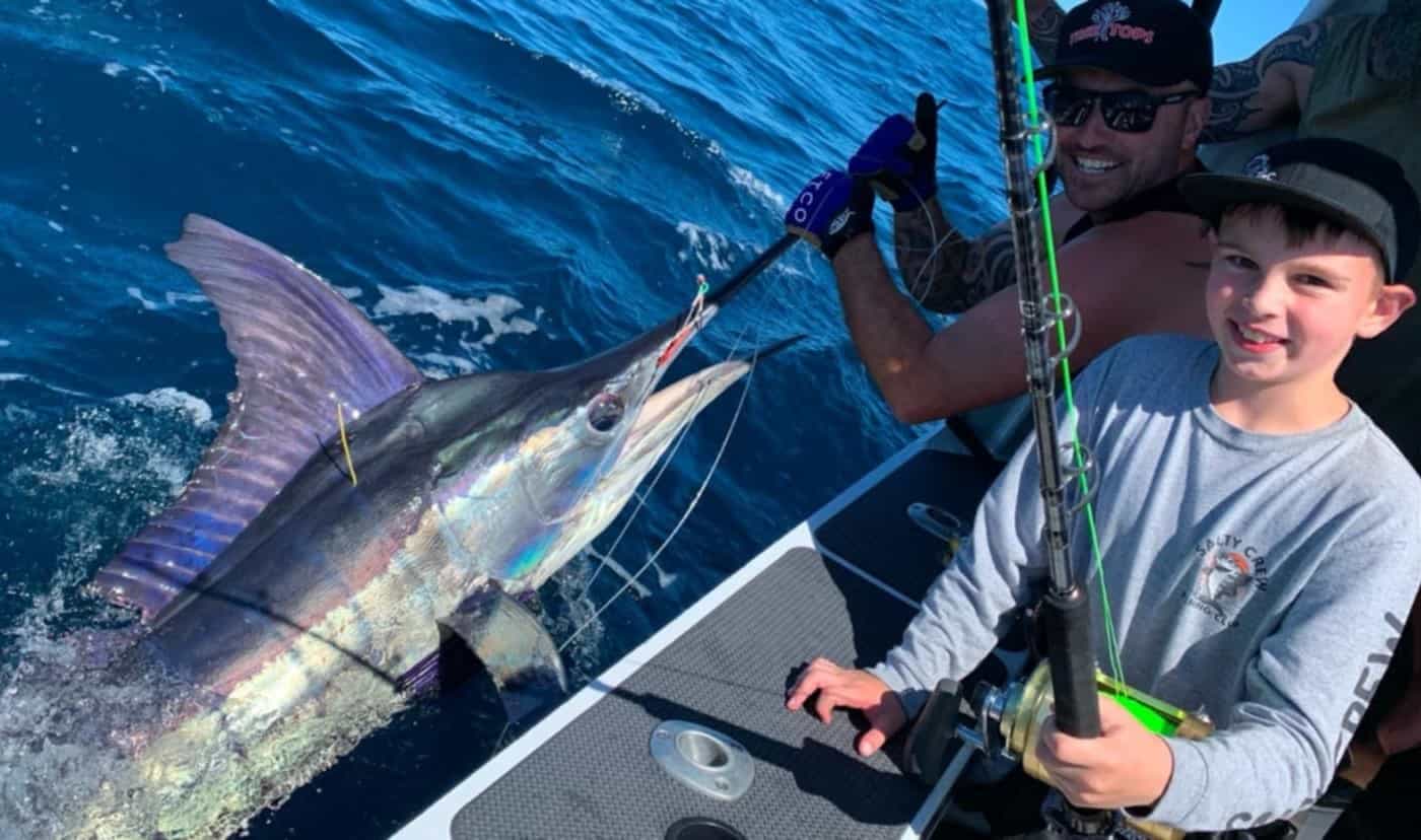 Small fry angler Taten Drake with $1000 Marine Deals vouchers for first tagged marlin last season!!!!